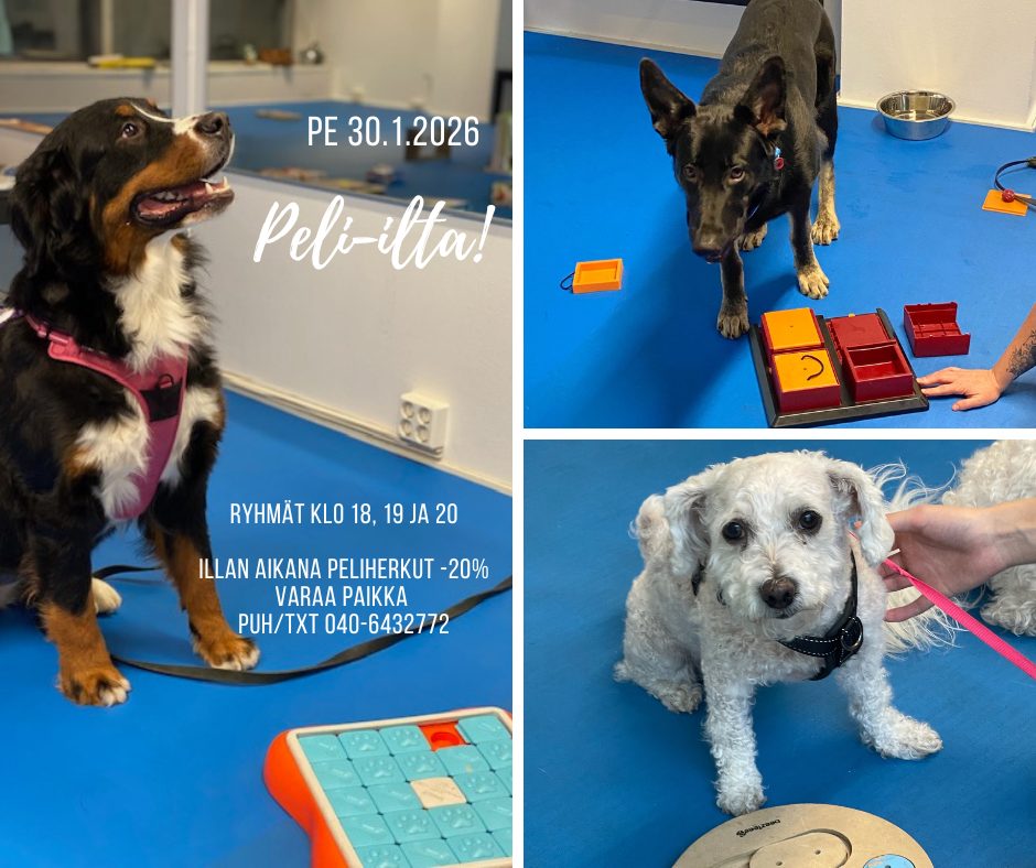 - Peli-illan hinta 16 € / koira