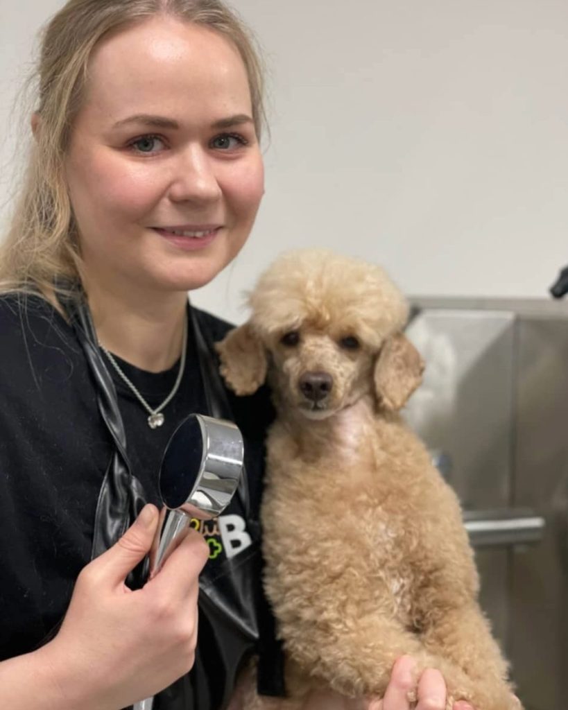 Olen koulutukseltani hammashoitaja ja olen työskennellyt hoitoalalla 15 vuotta. Halusin suunnata kohti omannäköistä, mielekästä työtä eläinten parissa. Koirien Hyvinvointikeskuksessa aloitin harjoittelijana tammikuussa 2025, ja valmistuin trimmaajaksi Taitotalosta syksyllä 2025. Työssäni minulle on tärkeää käsitellä koiraa lempeästi ja kunnioittaen.