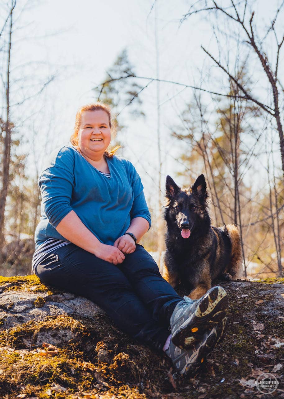 Olen taustaltani sairaanhoitaja (AMK) ja ympäristöteknologian insinööri. Arkityöni vietän ihmisten parissa, muun muassa ensiapukoulutuksia pitäen. Koirat ovat kuitenkin aina olleet lähellä sydäntäni, ja lapsuudessani meillä oli kotona yksi koira. Ensimmäinen varsinainen oma koirani, saksanpaimenkoira Myy, muutti luokseni joulukuussa 2013. Tämän jälkeen koirien määrä on hiljalleen kasvanut, ja tällä hetkellä kotoa löytyykin Myyn lisäksi kolme belgianpaimenkoiraa: Maj, Sera ja Grita.