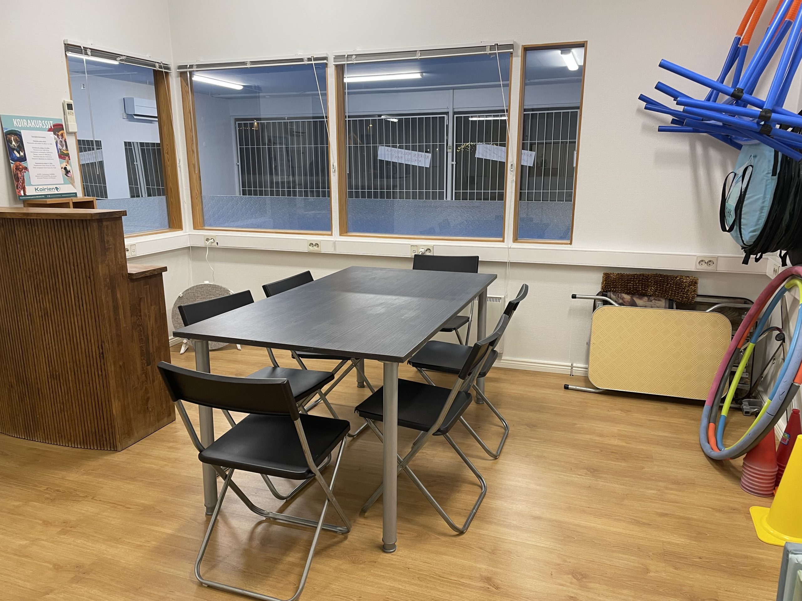 6. Koulutustilan käyttäjät vastaavat omasta ja koiriensa toiminnasta. Mahdollisia vahinkoja varten tulee käyttäjän hankkia oma vakuutus niin halutessaan.